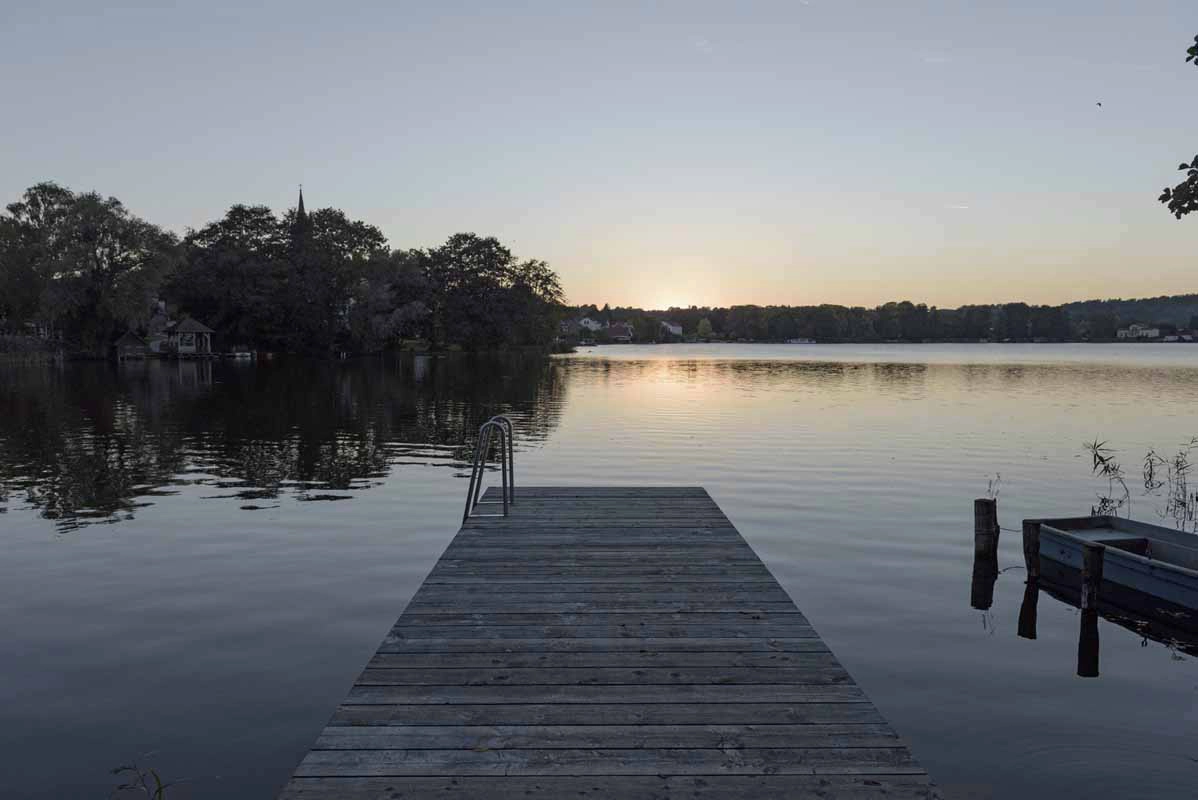 die am südgiebel und seeseitig befindlichen anthraziten und geometrisch streng angelegten naturkiesflächen dienen den bewohnern als terrassenflächen.